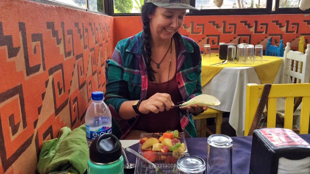 You can put anything inside a tortilla. Seriously. Guac, fresh veg, banana, potato chips.. They make for awesome bus snacks and they also work well as a ‘family’ meal at a hostel – everyone can make their own specialty – beans/ guac/ sauteed veg/ mushrooms/ heavily garlicked fried potatoes/ sauteed sweet pepper and onion – and then everyone builds their tacos to their own taste and/or dietary needs.